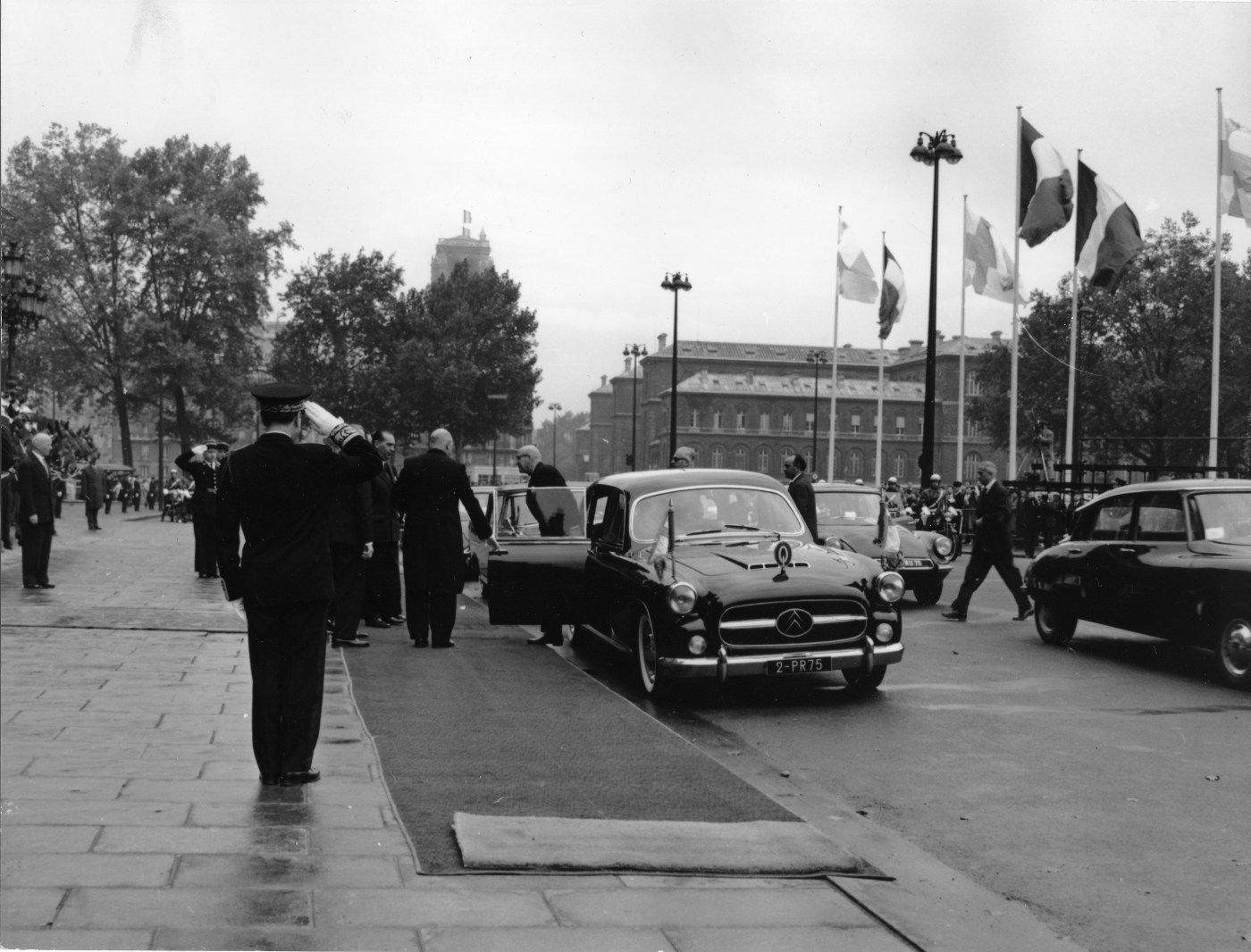 Ja koska oltiin Ranskassa oli selvää ettei valtion päämiesten kuljettamiseen riittänyt tavanomaisuus vaan käytössä oli Chapron-koritehtaan valmistama avokorinen Citroën tunnuksella 1 PR 75. Tunnuksella 2 PR 75 oleva auto oli muuten samankaltainen mutta se oli umpikorinen. Saattueen muina autoina oli Citroën D ”prefecture-mallit”, joita myytiin vain valtion virkamiehille. Auton tunnistaa kokomustasta värityksestä.