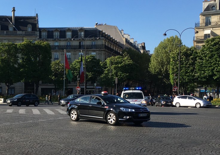 Musta Citroën C5, tällä kertaa taksina.Vanhempaa kalustoa ei juuri muutamaa poikkeusta lukuun ottamatta ollut liikkeellä. Näistä ehdottomasti hienoin oli avokorinen Traction Avant ja jutun pääkuvassa oleva upeasti entisöity Citroën DS.