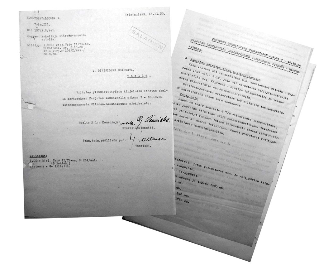 Karjalan Kannaksella järjestettiin 7. -10.10.1930 ajokoe, jossa pyrittiin selvittämään Citroën-maastovaunun soveltumista armeijan käyttötarkoituksiin. Ohessa tiivistelmä ajokokeen raportista.