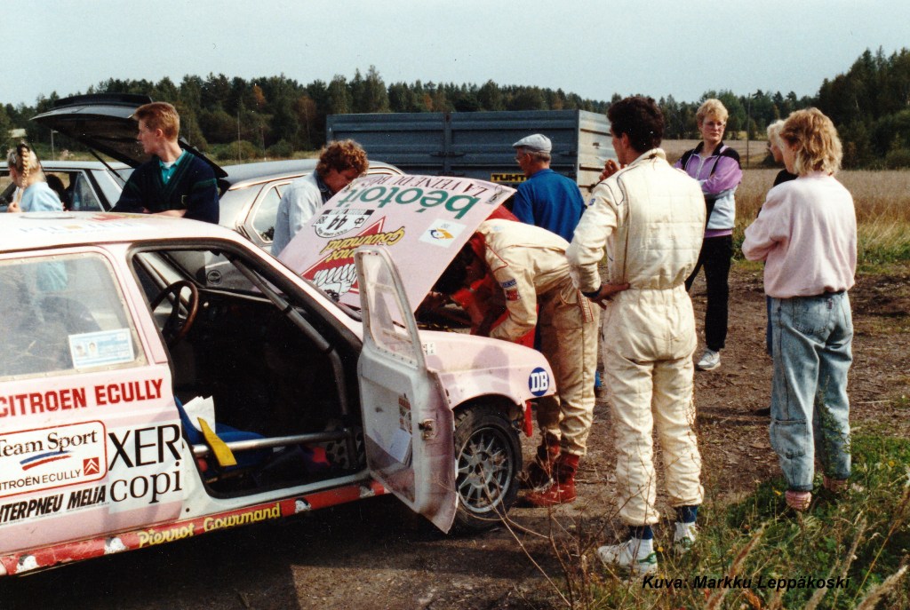 Siinä porukassa kyllä sattui ja tapahtui. Milloin huoltoauto oli ojassa, milloin se oli hukassa, poliisit jäljittivät edellisvuoden maksamattomia sakkoja ja niin edelleen. Poliisit kyllä pysäyttivät huoltoauton mutta kun kaverit osasivat ”vain” ranskaa ja sitä eivät poliisit taitaneet, niin yhteisymmärryksen puuttuessa huolto sai lopulta jatkaa matkaa.
