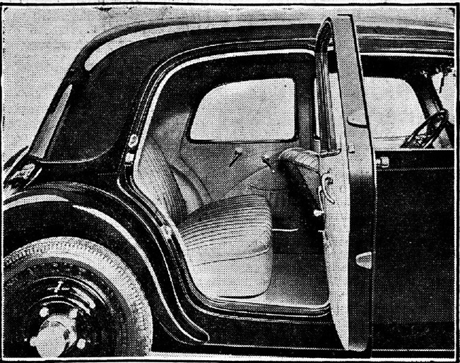 Ovet ovat tavattoman leveät, ja istuimet mukavat, kuten olla pitääkin. Mutta nämä ovat vain pintapuolisia huomioita, todelliset uutuudet ovat koneiston ja vaunun rakenteessa. Sanoimme jo yllä, että tällä autolla ei ole runkoa, eikä sitä olekaan olemassa vanhassa merkityksessä, vaan kori on tehty uuttaen teräksestä toimien samalla sekä korina että runkona. Toinen kiintoisa uutuus on jousitus, jota myöskään tavallisessa mielessä ei ole lainkaan, vaan sijalla ovat vääntövarret. Nämä vääntövarret eivät pyörien joustaessa taivu lainkaan, vaan kiertyvät pituusakselinsa ympäri. Luonnollista on, että edessä on »polviniveljousitus», mutta sekin on sikäli erikoinen, että raideväli ei pyörien hyppelehtiessä muutu, tätähän on pidettävä etuna sekä vaunun vakavuuden, että kumien kulutuksen kannalta. Edelleen on vaunussa etupyöräveto, ei sinänsä mikään uutuus, mutta sarjassa valmistetuissa halvoissa vaunuissa, joihin tämä uusi Citroen lukeutuu, se ensi kertaa esiintyy. Silmäys konekannan alle on myös mielenkiintoinen, pieni puolentoista litran kansiventtiili-moottori kuuluu kehittävän 37 hv ja kiidättävän vaunua parhaimmillaan 100 km nopeudella. Bensiniä kuuluu menevän siinä 7—9 ltr. sadalla.