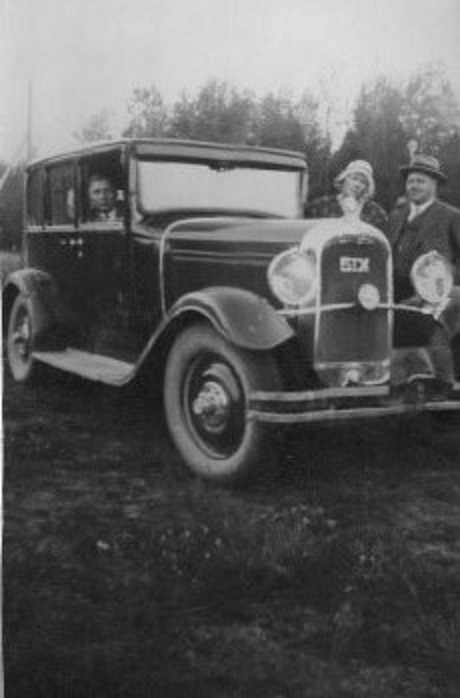 Autossa Tommi Laitisen mummon isä Antti Mäntymies. Kuva otettu Sortavalassa, tarkkaa kuvan vuosilukua ei ole tiedossa.