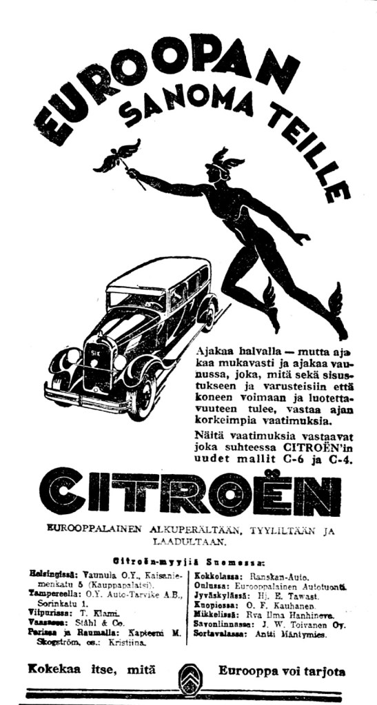 Historialla on tapana toistaa itseään. Sata vuotta sitten eurooppalaista autoteollisuutta uhkasi amerikkalainen massatuotanto. Citroën oli lehtimainoksillaan herättämässä autoilijoita tähän uhkaan myös Suomessa. Nyt uhka tulee idästä halpojen kiinalaisten sähköautojen muodossa. Stellantiksen pääjohtaja Carlos Tavares varoittaa tuotannon kuihtuvan ja tehtaiden sulkeutuvan, mikäli nykymeno jatkuu.