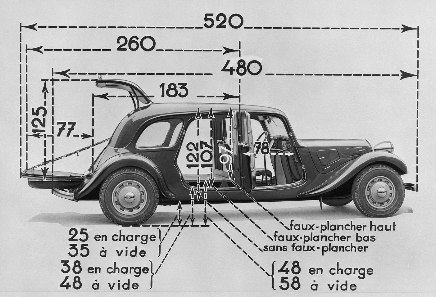 Vuonna 1938 Traction Avant -mallisto täydentyi Commerciale vaihtoehdolla, joka oli monikäyttöisyyden edelläkävijä. Autossa oli muunneltava takapenkki sekä suuri kaksiosainen takaluukku. Täysin alas laskettuna alempi osa muodosti ”lavan”, mikä teki autosta tarvittaessa jopa avolavan korvikkeen. Suunnittelun lähtökohtana oli ollut, että sama auto voi toimia sekä 500 kg:n pakettiautona että limousinena!
