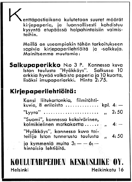 Vuonna 1910 perustettu Koulutarpeiden Keskusliike Oy oli Suomen merkittävimpiä oppilaitosten varustajia. Tultaessa 1930-luvulle yritys ei ollut ainoastaan jälleenmyyjä, vaan myös merkittävä valmistaja ja kustantaja. Sillä oli tärkeä rooli suomalaisen kansakoulun muovaamisessa, tarjoten kaiken tarvittavan: tunnetut opetustaulut, kartat, pulpetit, koulutarvikkeet ja jopa täytetyt eläimet. Unohtamatta tietenkään oppikirjojen kustantamista.